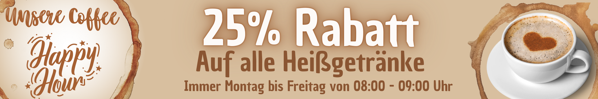 Täglich zwischen 8 und 9 Uhr heißt es "Heißgetränk-Happy-Hour" => 25% Rabatt auf alle Heißgetränke: