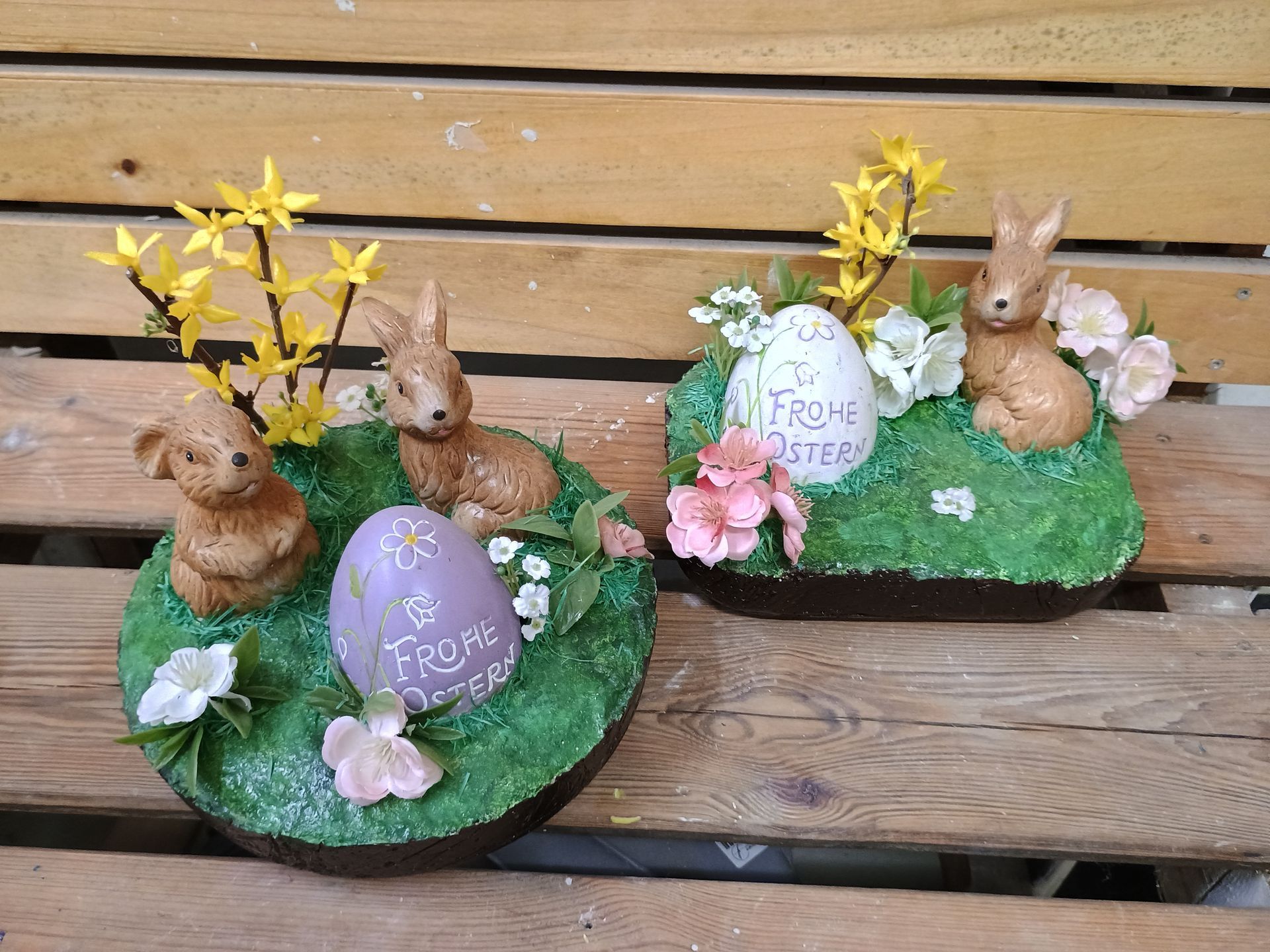 Neben der Gussform haben beide auch noch weitere Projekt-Ideen umgesetzt: Sylvia hat – der damaligen Jahreszeit entsprechend - noch Oster-Gestecke aus Beton angefertigt.