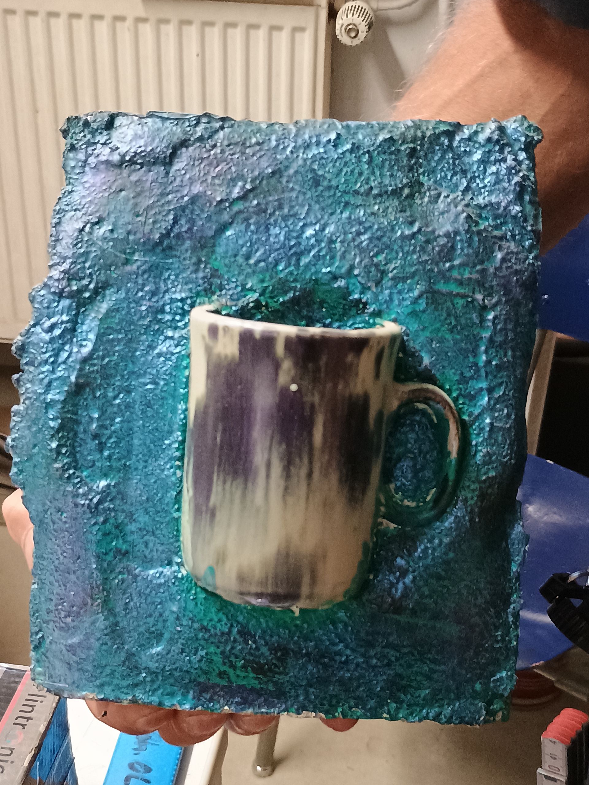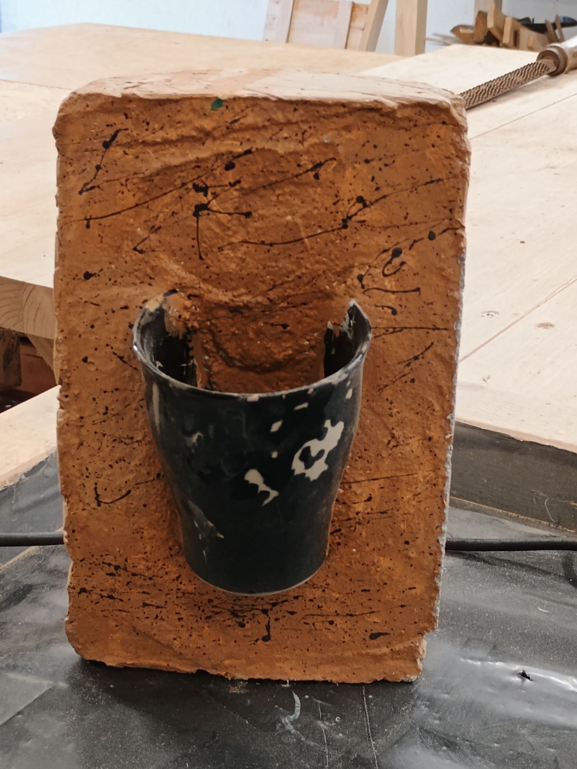 Nach dem Guss und der Trocknungszeit hat sich Jentino für einen Becher als einzuarbeitenden Gegenstand entschieden. Diesen nutzt er nun für Stifte. Sylvia hat ein Teelichtglas gewählt, welches sie mit einem Teelicht gefüllt für gemütliche Kerzen-Zeit nutzt.